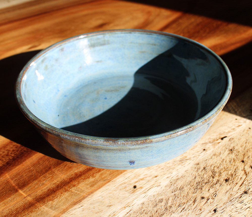 This wide, gently sloped pasta bowl features a soft blue glaze with natural tonal shifts that give it a calm, coastal feel. Ideal for pasta, salads, stir-fries, and generous everyday meals, it’s a steady, practical piece that brings a relaxed ease to the table.
