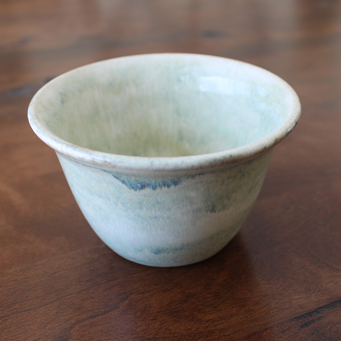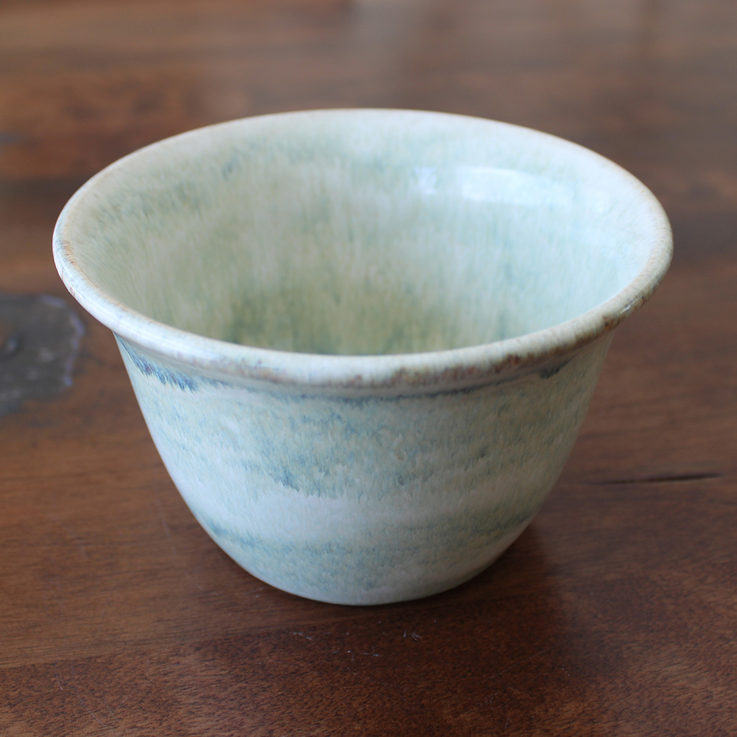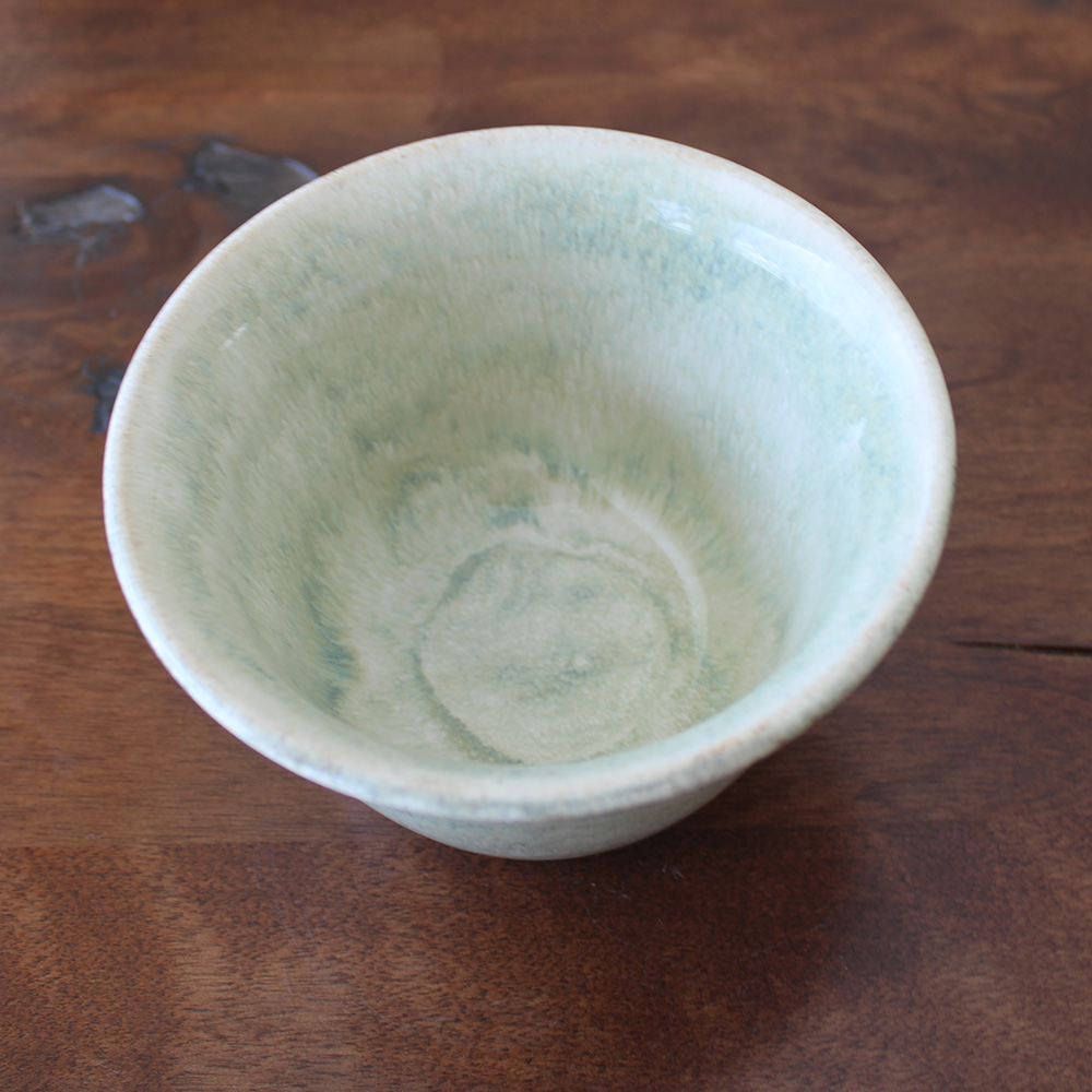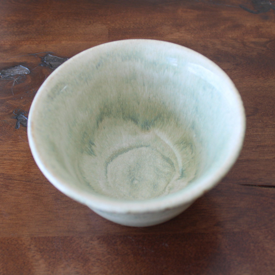 This bowl carries a pale green glaze with soft movement and tonal variation throughout. The color deepens toward the base and lightens along the rim, highlighting the curve of the form. Sized for small servings, simple and functional, with a fresh, clean feel.